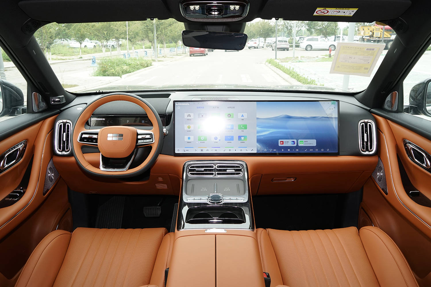 动力系统方面,吉利银河M9由1.5T四缸涡轮增压发动机加3台电动机组成插电式混动系统,其中1.5T发动机最大功率120千瓦,匹配11合1智能电驱,并有两种容量的电池组可选,纯电续航分别为100公里和230公里。新车综合续航超1500km,0-100km/h加速时间4.5秒,百公里馈电油耗4.8L。辅助驾驶方面,采用千里浩瀚H5方案亿操盘,可实现全场景车位到车位D2D功能。